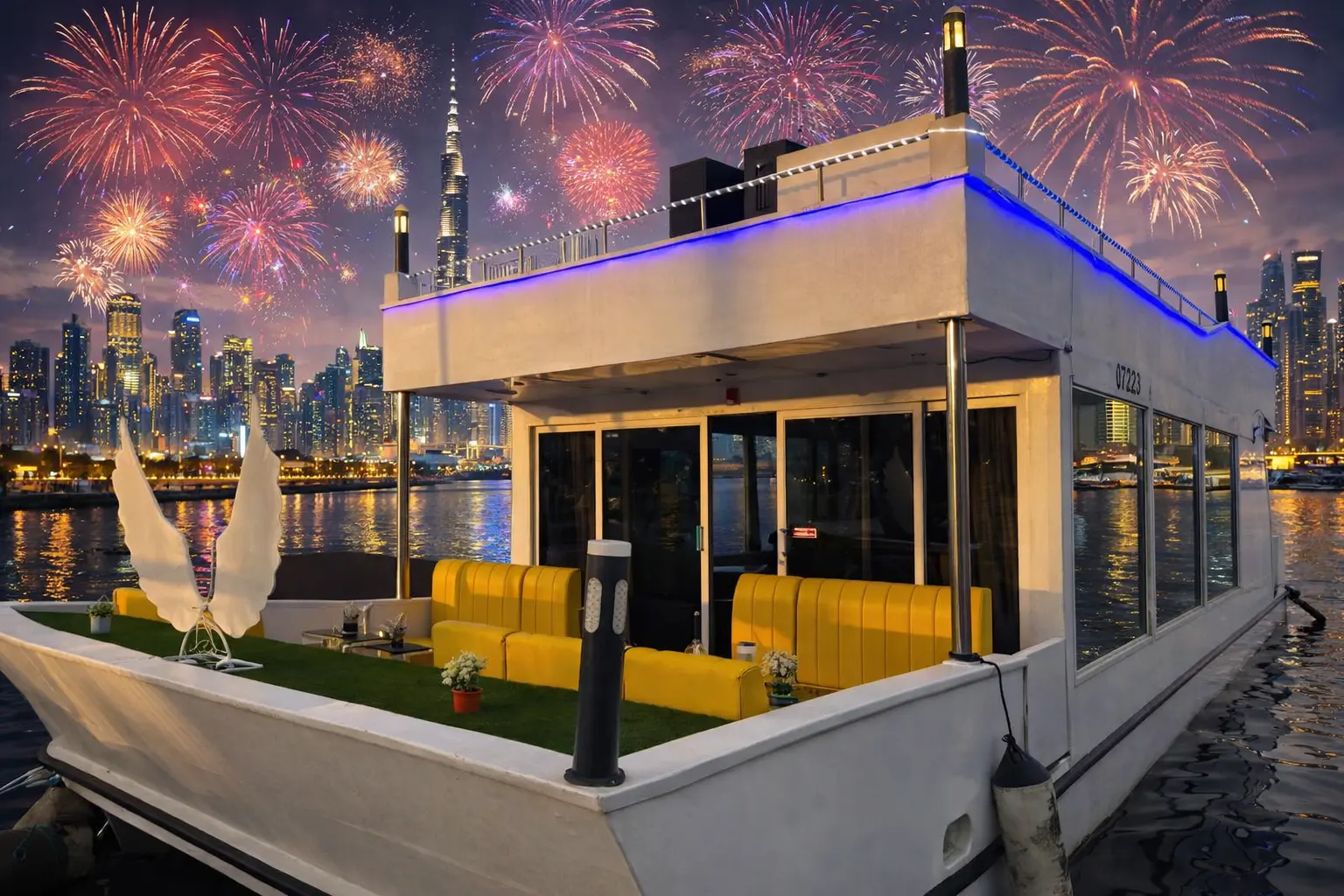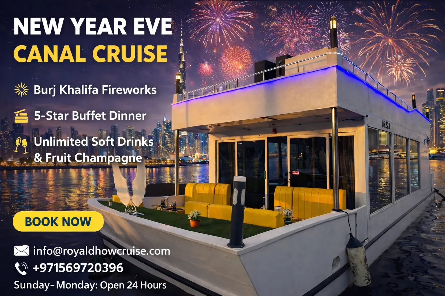 Welcome the New Year in style with the Paradise Canal Cruise Dubai NYE, an unforgettable 3-hour luxury yacht experience cruising through Dubai Canal with breathtaking views of Burj Khalifa fireworks, live entertainment, and a lavish buffet dinner.